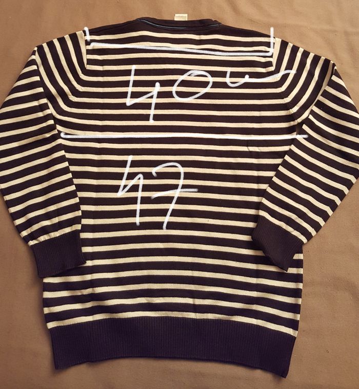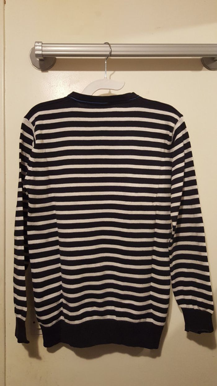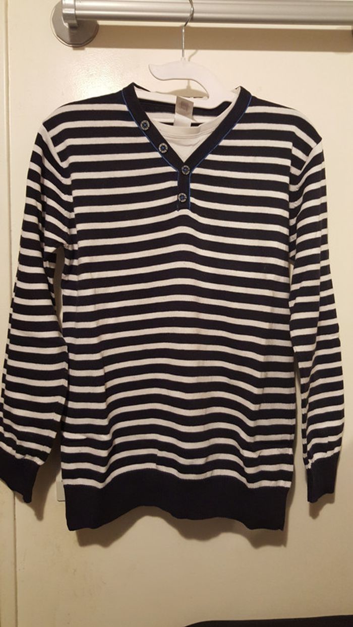 Bonjour je vends ce pull pour ado en bon état taille : 15/16 ans (voir photo 3 pour les dimensions si besoin de comparaison : épaule à épaule 40cm aisselle à aisselle 47cm) Couleur : bleu marine rayé blanc marque C&A couleur : blanc/marine à rayure Marque : C&A
