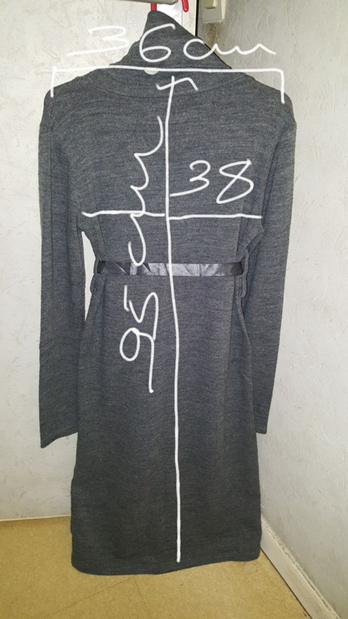 bonjour je vends cette jolie robe/tunique en très bonne état. j'ai mis les dimensions sur la dernière photo si vous voulez comparer avec vos vêtements. De aiselle à aiselle : 38cm longueur à partir de la nuque : 95cm Épaule à épaule : 36cm couleur : gris taille : 38