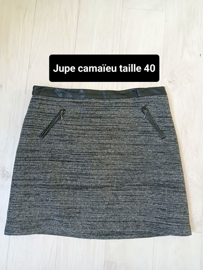 ✨ Bien lire l'annonce et regarder les photos merci ✨ 🍁 jolie jupe hiver camaïeu taille 40. 🔺Elle est en très bon état mais le simili cuir est légèrement abîmé à un endroit ( voir avant dernière photo) Cette jolie jupe comporte quelques dorures qui rendent la jupe un peu brillante. Tour de taille en simili cuir. Fermeture éclair au dos de la jupe . Elle dispose d'une doublure intérieure. Mesures ; longueur environ 43cm Largeur hanches 50cm Largeur taille 42,5 cm 💫 Marque camaïeu 💫 Taille 40 💫 Jupe doublée hiver 💫 Légèrement brillante 💫 Légère usure à un endroit du simili cuir N'hésitez pas à me contacter si vous avez des questions 🙂