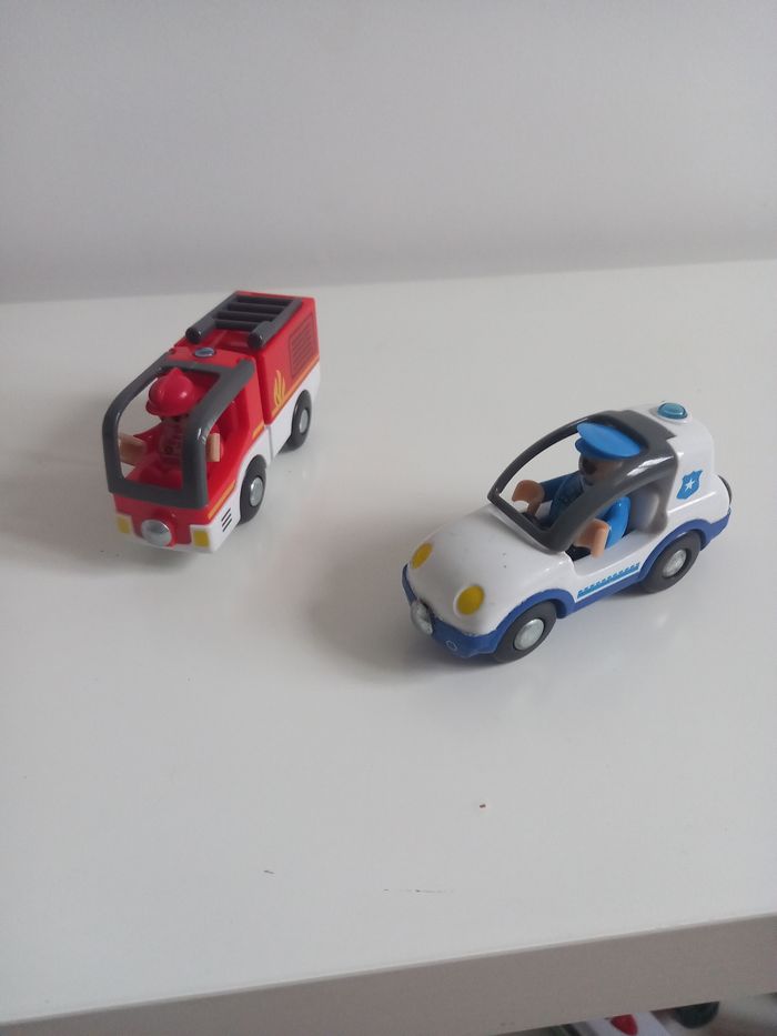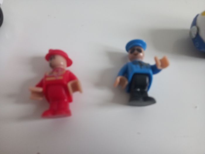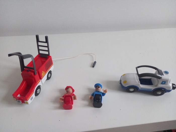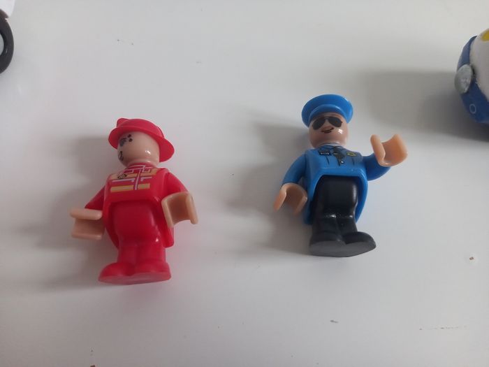 Pompiers et police avec le bonhomme. Aimanté pour complète un set de train en bois.