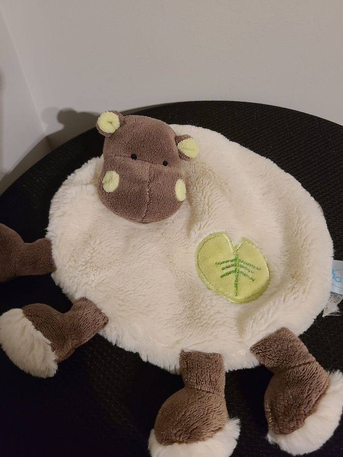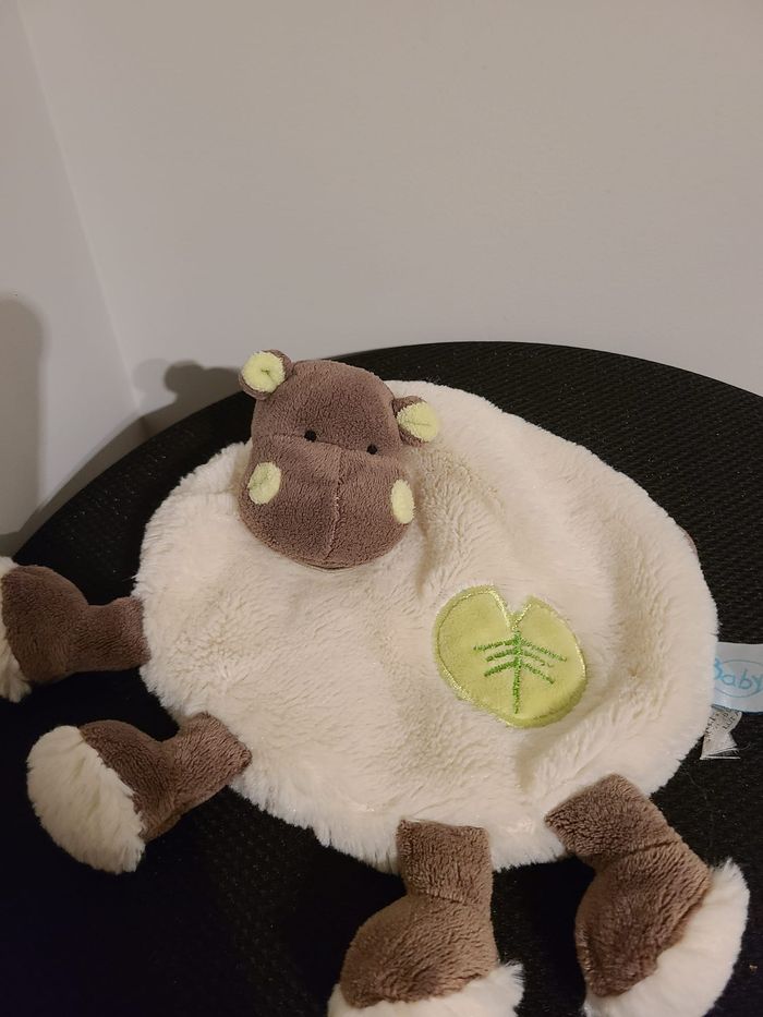 Hippopotame BABY NAT doudou plat beige et marron feuille 86