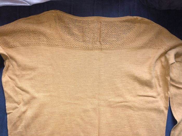 Pull fin moutarde avec mailles ajourées sur sur le dos de marque Bonobo taille S en tbe à 15 euros