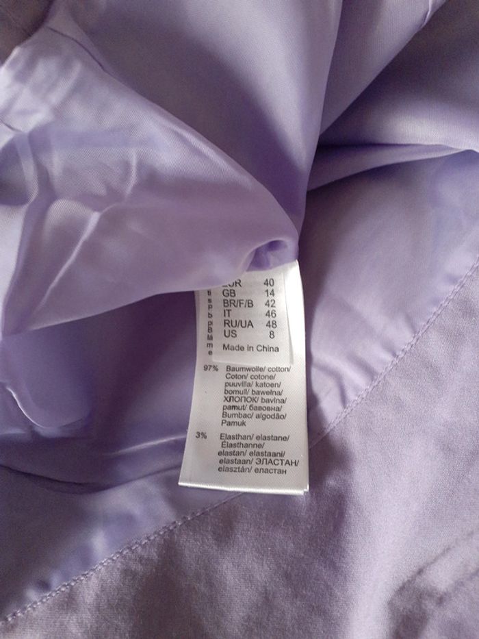 Jolie couleur mauve lilas pour ce blazer taille 42 en 97 % coton et 3 % d'élasthanne entièrement doublé ,très peu porté en excellente état