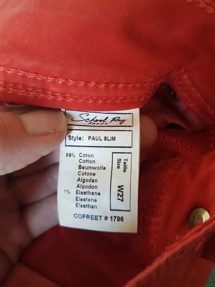 Jean rouge délavé, 99% Coton et 1% élastane, style PAUL SLIM T.27 / SCHOOL RAG XXXXX / Femme Très bon état #jeansetpentalonsboulie2318 #boulie2318taille38
