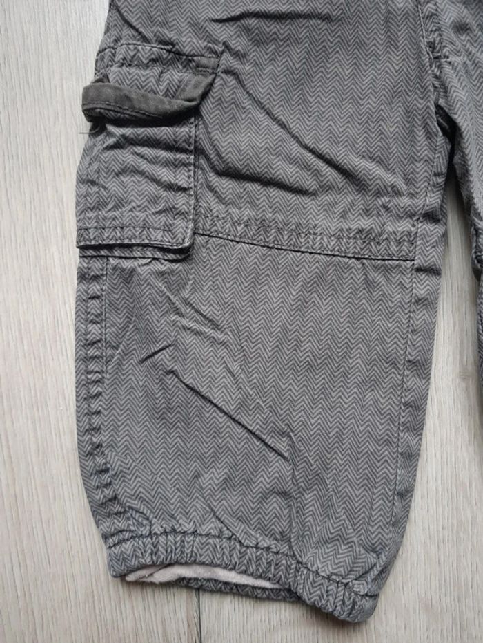 Pentalon doublé à l'intérieur, non ajustable à la taille avec élastiques, avec motifs et rayures zig-zag, gris et beige 12 mois / GÉMO / Garçon Porté, Bon État #12moisboulie2318