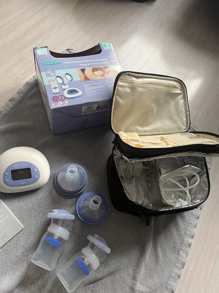 Je vends ce titre lait double pompage Lansinoh qui ne m’a que très peu servi car bébé allaité. Ce tire lait est utilisable en extérieur (a piles) et sur secteur. Je joins également la sacoche de transport qui sert également au transport du lait tiré car elle et isotherme.