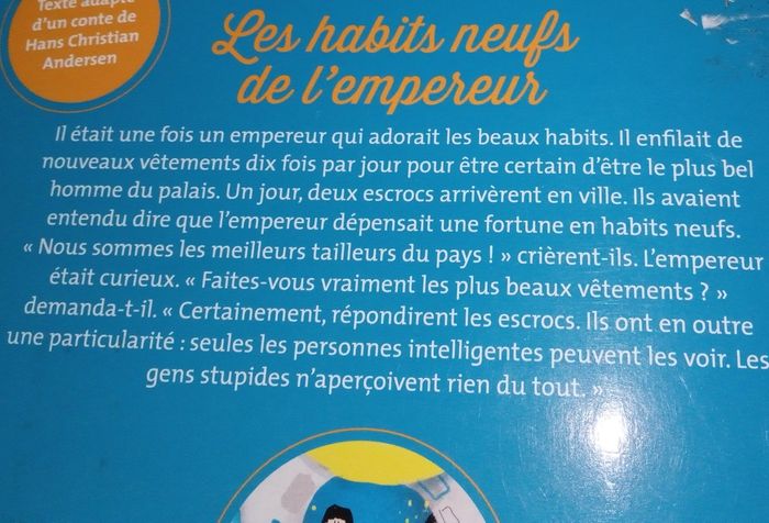 conte célèbre adapté pour les jeunes enfants: - très coquet, l'empereur a une obsession : se servir d'habits précieux. Un jour, 2 tisserand s'engagent à lui confectionner un vêtement d'exception..... N'hésitez pas à faire un lot ( bcp de livres cherchent une autre maison 😉)