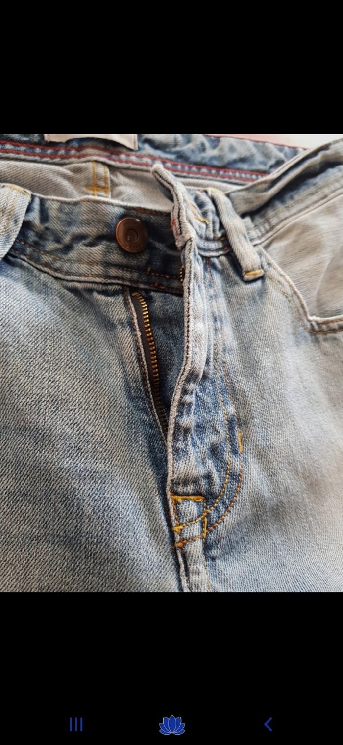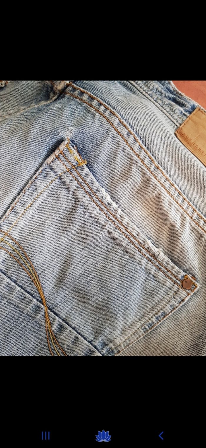 Short en jean à fermeture éclair. Poches arrière avec effet usé ( voir photo )