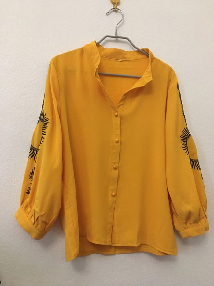 Chemise jaune brodée noir taille M - photo numéro 2