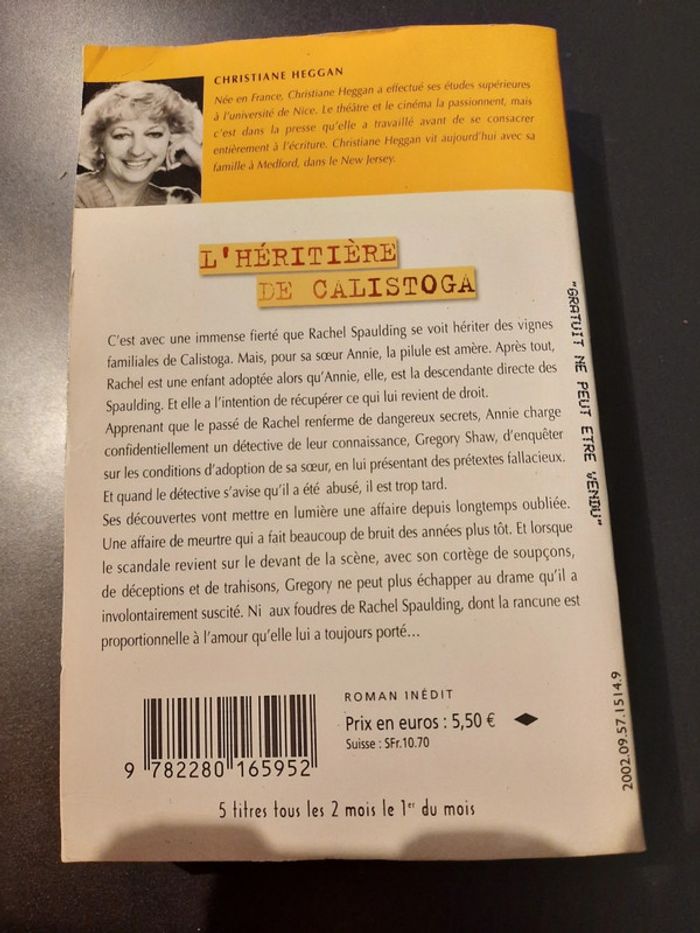 Édition best sellers. Année 2002 📚cliquez ici pour voir mes autres livres 📚 #paupau1011livreadulte #Paupau1011 #livre #christianeheggan #héritière #calistoga