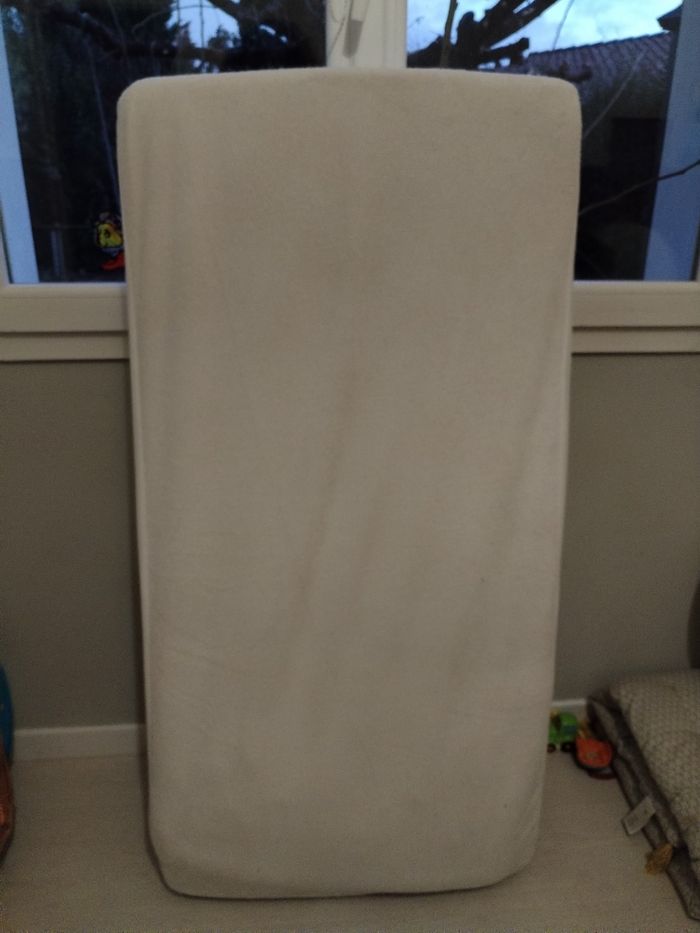60 par 120 cm Completement dehoussable Face naissance Tbe Vendu avec une alèse eponge mat
