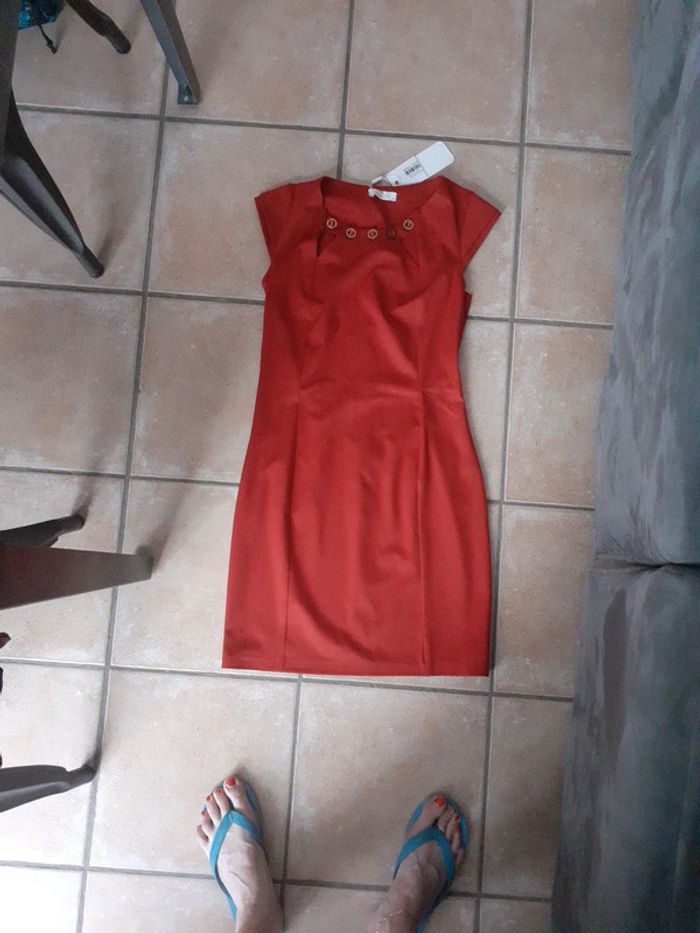 Très jolie robe rouge avec beaux boutons - photo numéro 1