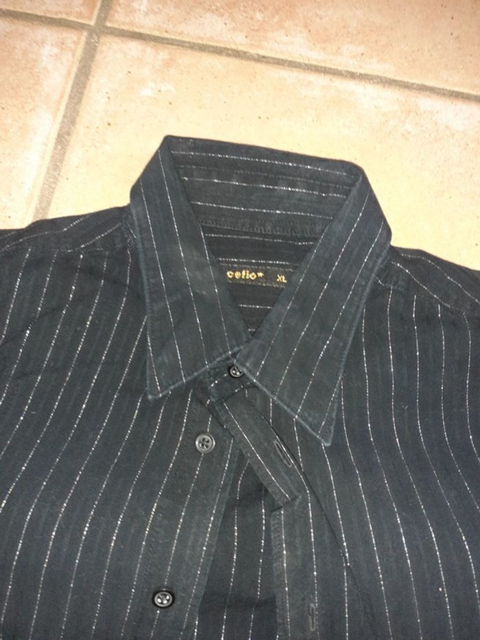Jolie chemise noire fines rayures argente - photo numéro 2