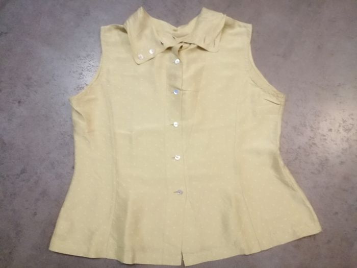 Chemisier sans manche jaune en soie
