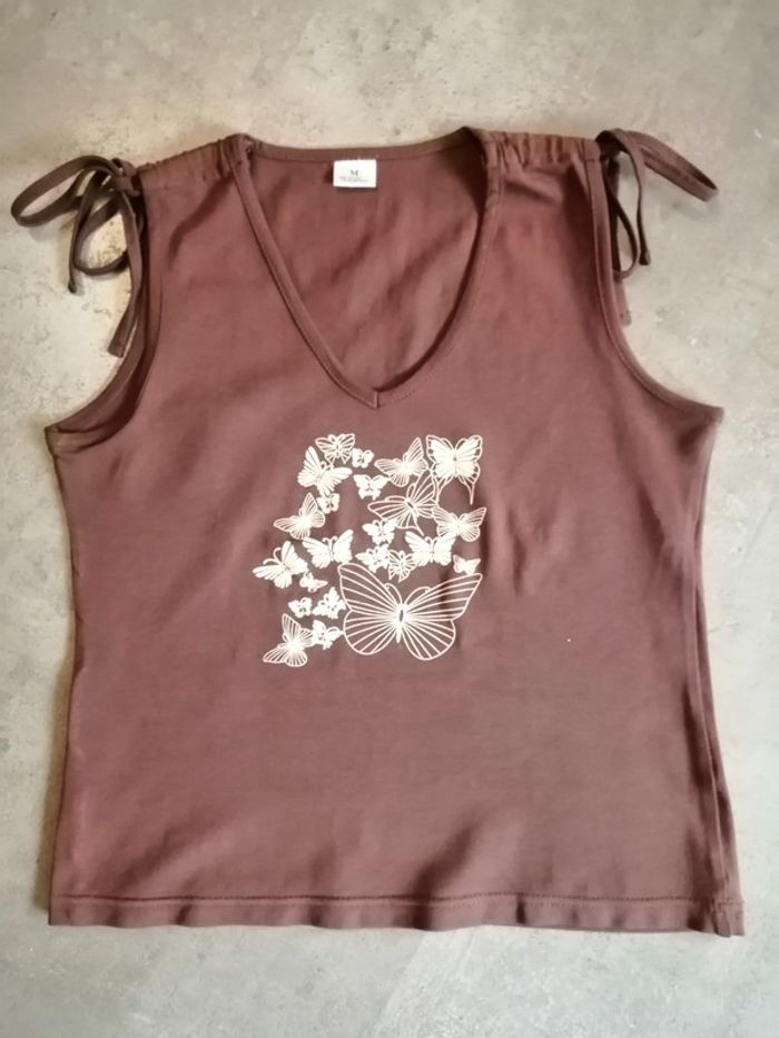 93 % coton, 7 % elastane. Largeur 39 cm, longueur 48 cm.Neuf