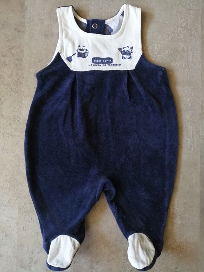 Grenouillère velours marine 0/3 mois Sucre d'orge