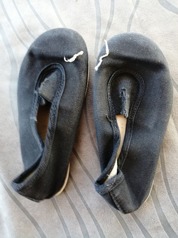 L'élastique devant à été fendu pour rentrer le pied facilement.