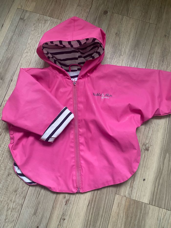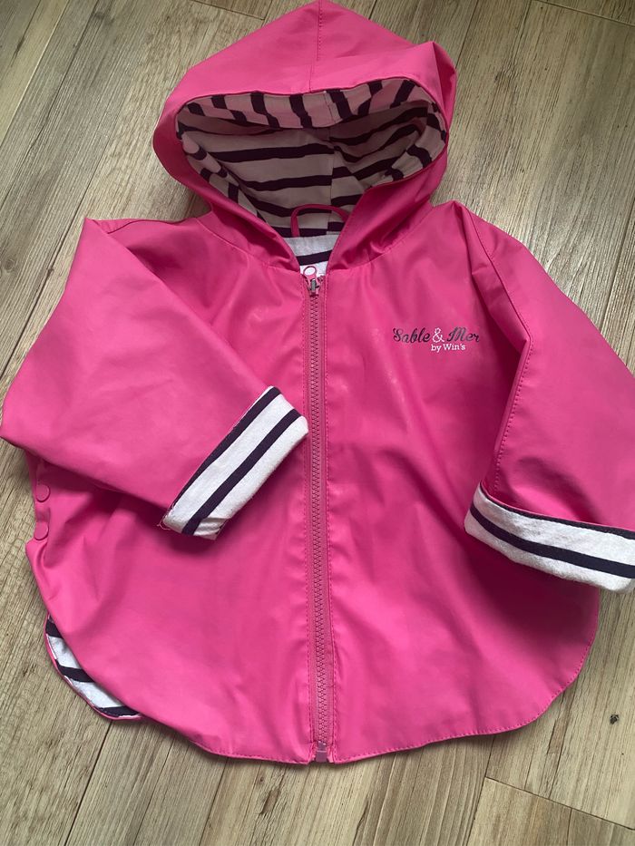 Poncho imperméable rose  marinière  24 mois - photo numéro 1