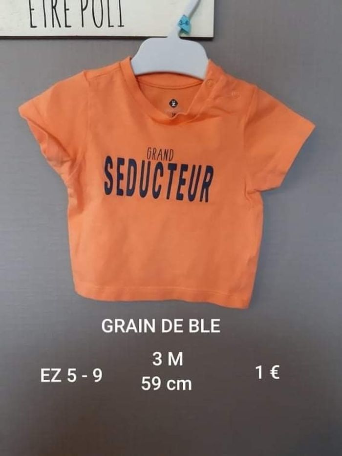 T shirt orange GRAIN DE BLE Très bon état Taille 3 mois 59 cm Prix 1 €