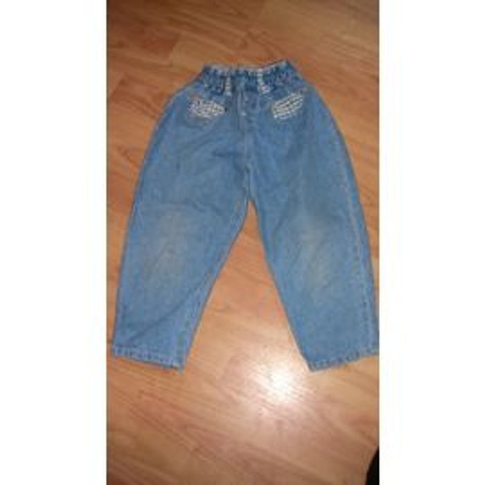 Jean bleu poches et passants ceinture carreaux blanc et bleu 2 ans