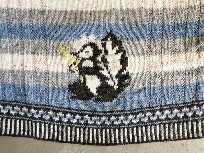 Pull bleu écru et gris 4/8 ans tricoté main - photo numéro 2
