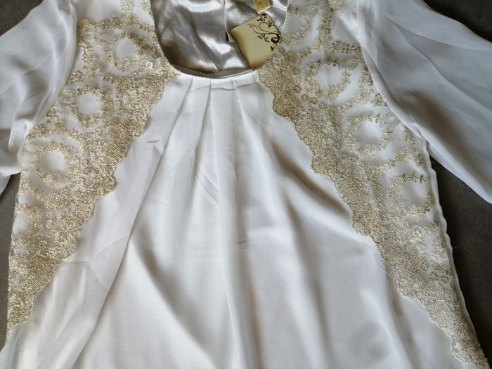 Neuf étiqueté. Très beau avec ses broderies or. Belle matière, doublée