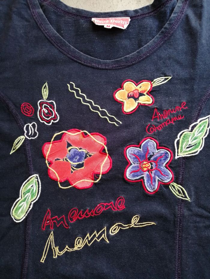 T-shirt marine brodé Taille M René Derhy - photo numéro 2