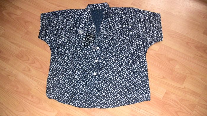 Chemisier avec épaulettes.Pantalon taille élastique.Fait par une couturière.Largeur taille pantalon 32cm,longueur 94cm,largeur chemisier 50cm,longueur 65cm