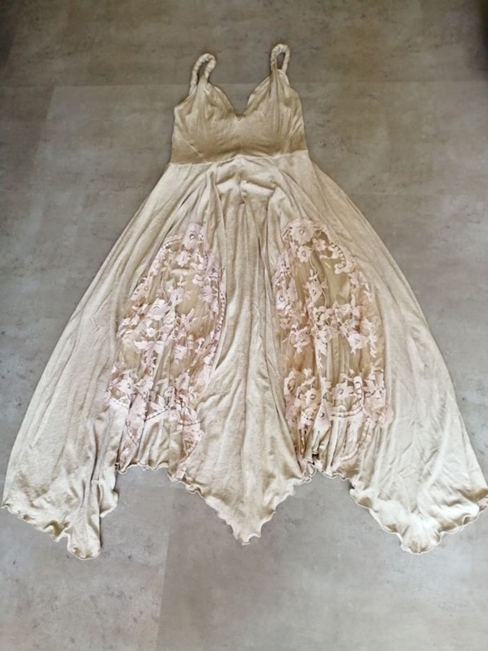 Très belle. Dentelles.L'étiquette a été coupée. longueur 100cm, largeur taille 35cm. Originale, destructurée