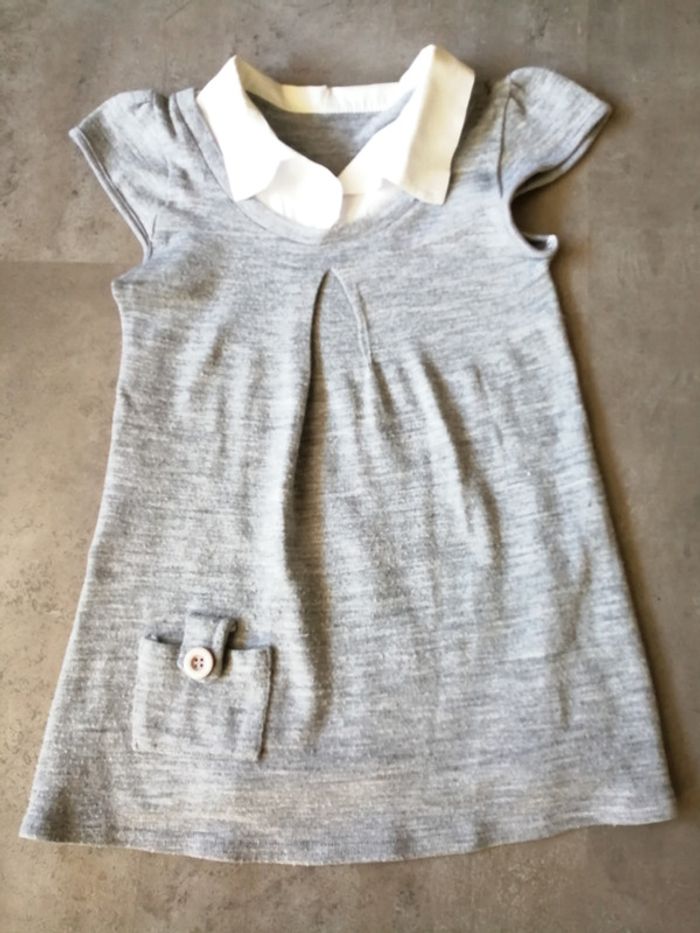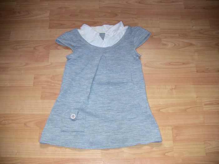Pull gris manches courtes avec col chemisier blanc Taille 2 - photo numéro 2