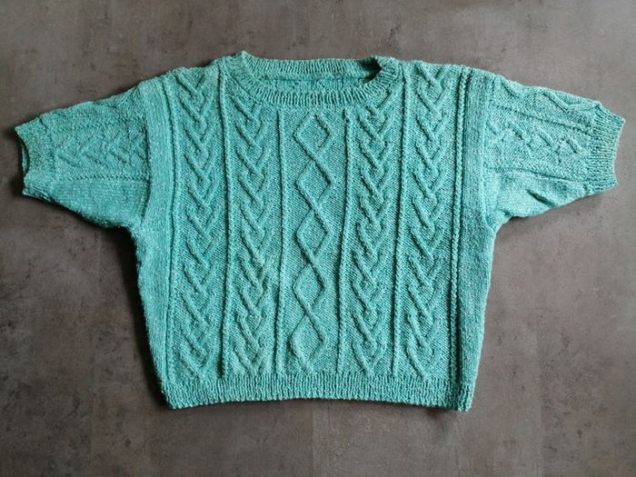 Pull en coton manches courtes vert Tricoté main