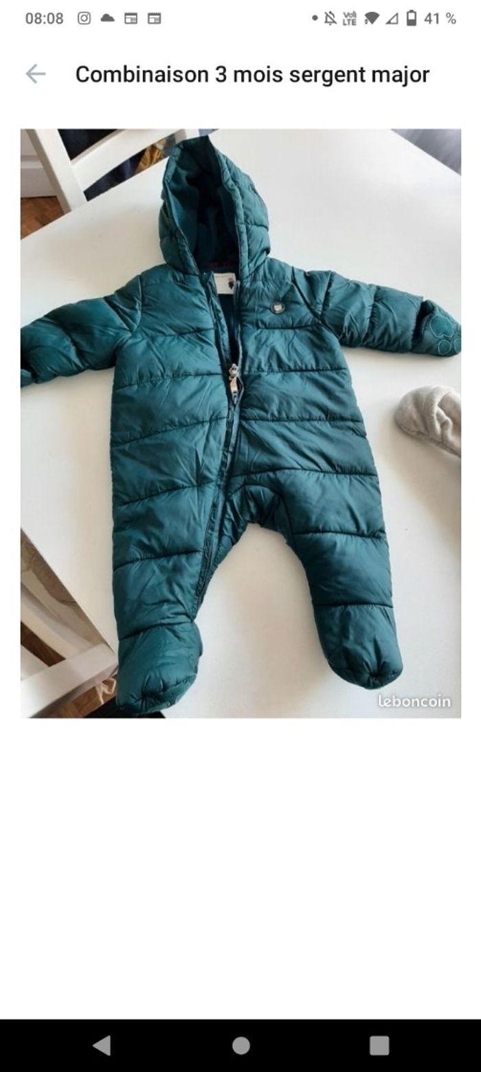 Taille 3 mois neuve jamais portée s'ouvre jusqu'au pieds et moufles intégrées.