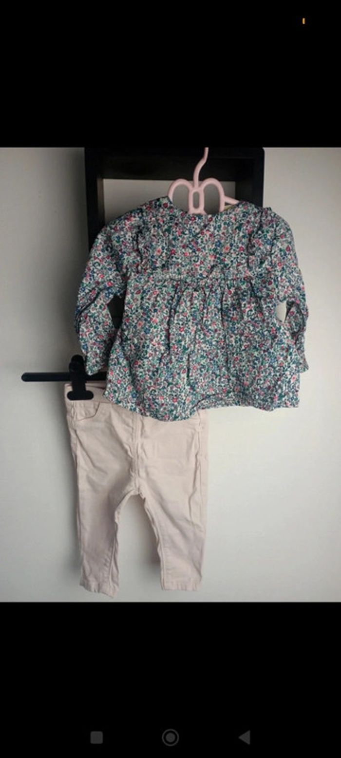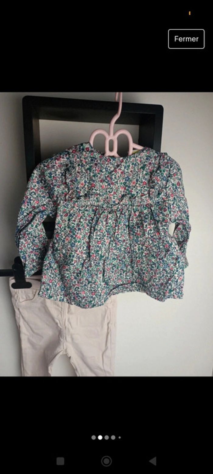 Tape a l'oeil 6 mois Très bon état , pantalon rose pâle très confort Et chemise fleuries très joli