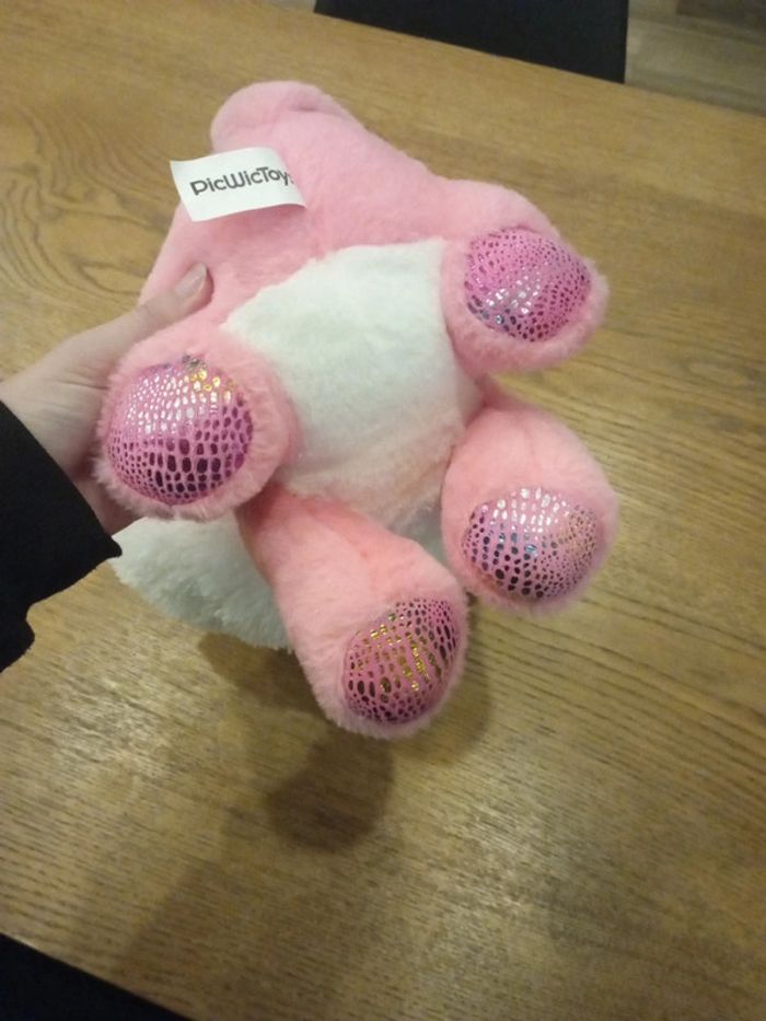 Neuf quasi pas servi Très joli peluche , très mignonne avec ses gros yeux ronds , pailletée Idéal petite fille
