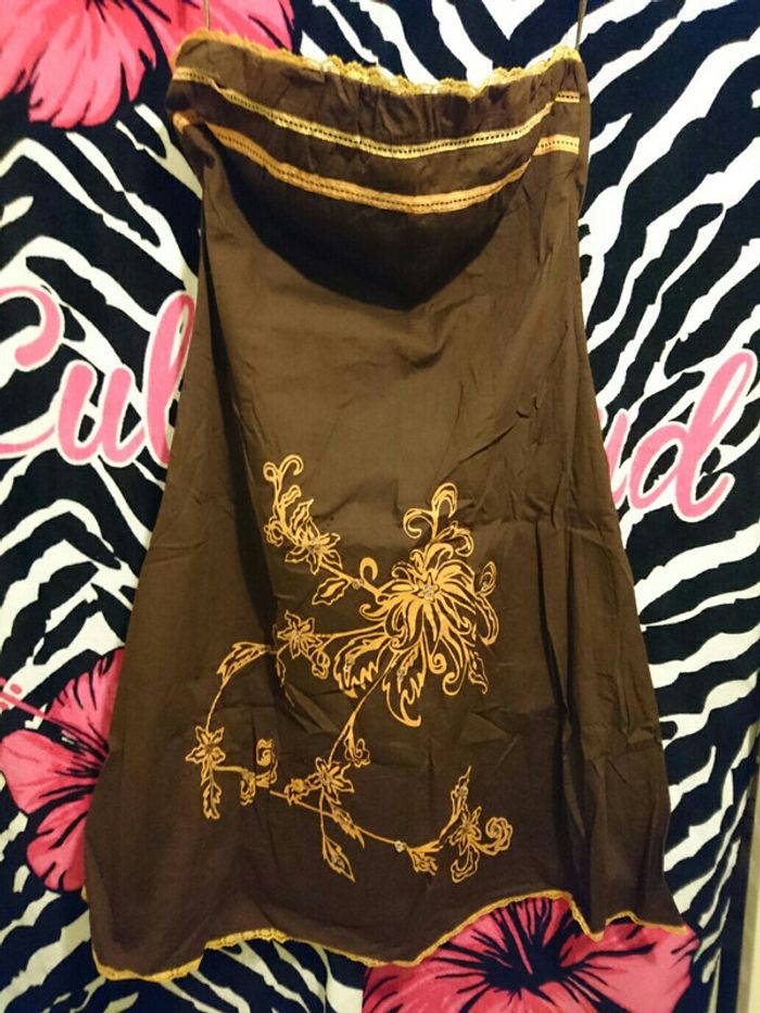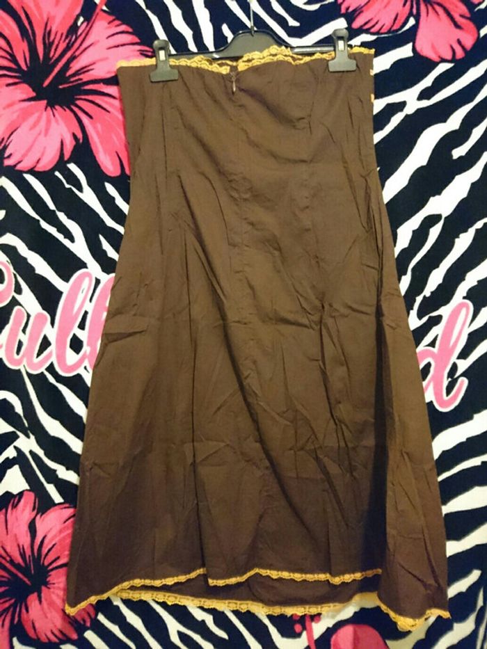 Robe bustier avec liseré en dentelle Marron et orange Fermeture zip au dos + crochet Longueur 83 cm Largeur 40 cm Composition: 96 % coton 4 % élasthanne À recoudre sur 3 cm au niveau du liseré en dentelle Possibilité d'envoyer des photos supplémentaires #robececilia33600 #vêtementscecilia33600 #cecilia33600