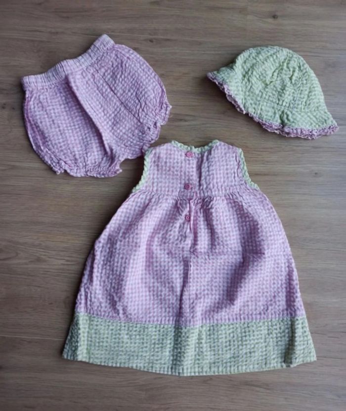 Ensemble tenue bébé 12mois 1 an une robe un short un chapeau Vichy violet vert - photo numéro 3