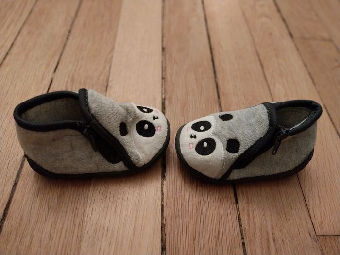 Chausson panda de la marque TeX. Peu portés, très bon état. Se ferme avec fermeture éclaire sur le côté. #mariesouc_garçonchaussures