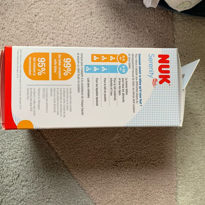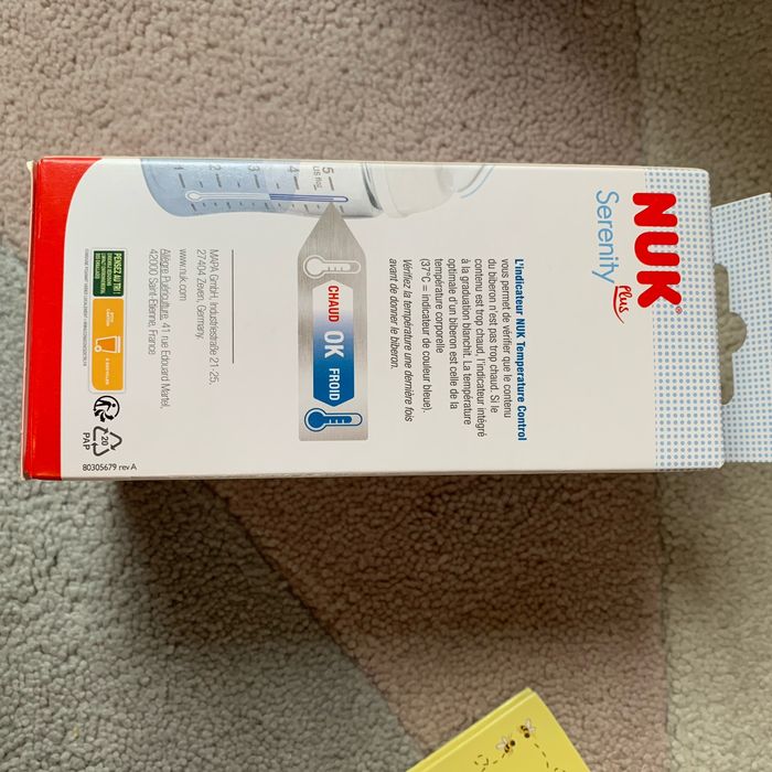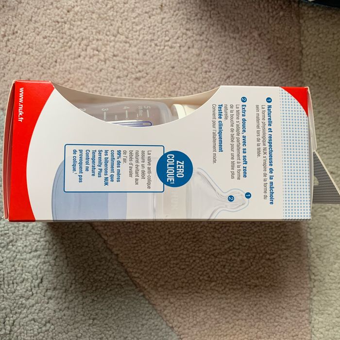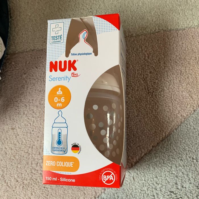 Biberon 150ml Nuk serenity plus 0-6 mois Valve anti colique Indicateur température