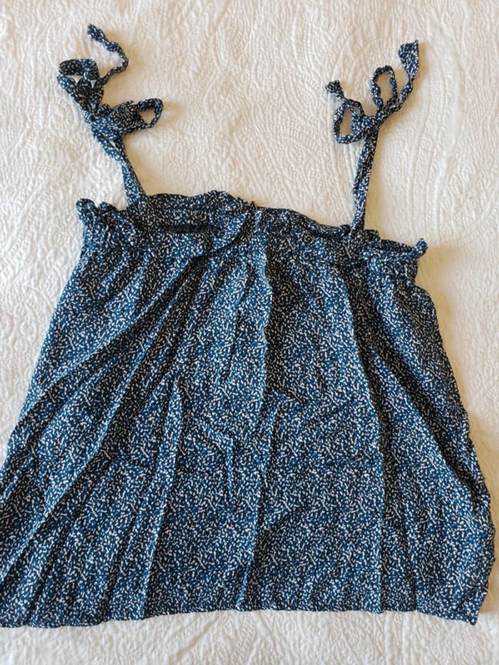 Joli débardeur bleu à pois, les bretelles sont faites par des nœuds à faire soi même Taille 38 ou M Marque Gémo Jamais porté N'hésitez pas à regarder mon dressing