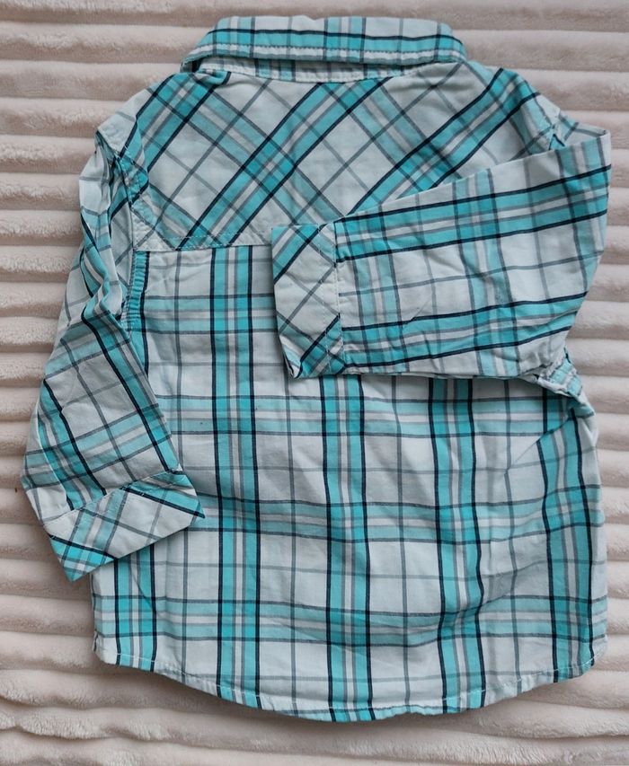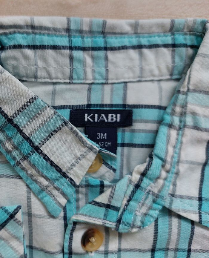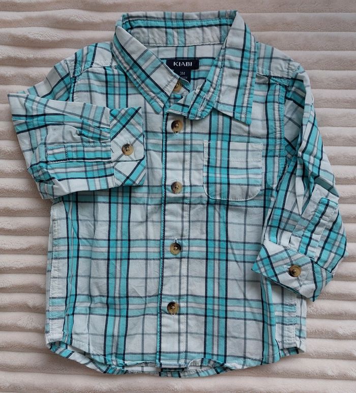 Chemise manches longues 3 mois, kiabi Turquoise et blanc Fermeture à boutons, en coton 2€