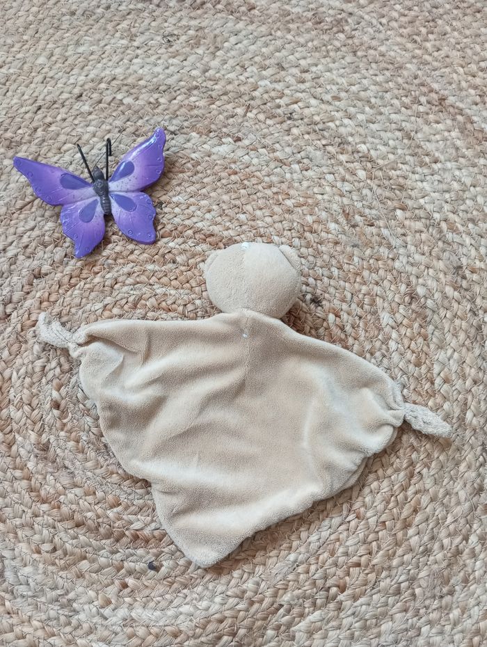 C&A Doudou ours Triangle Marron Broderies fleurs Écharpe rayée Étiquette de composition absente #douceur_doudou C8