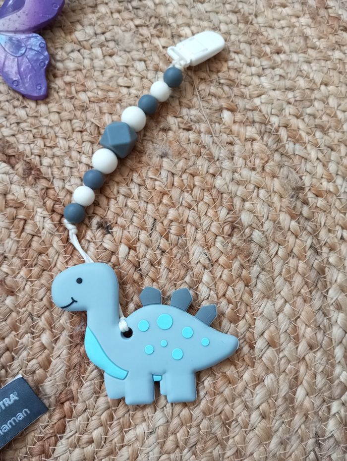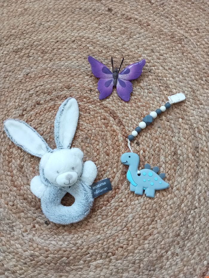 Nicotoy Simba Kiabi Attache tétine silicone Dinosaure bleu Hochet ours peluche Capuche oreilles de lapin Beige gris #douceur_joueteveil C8