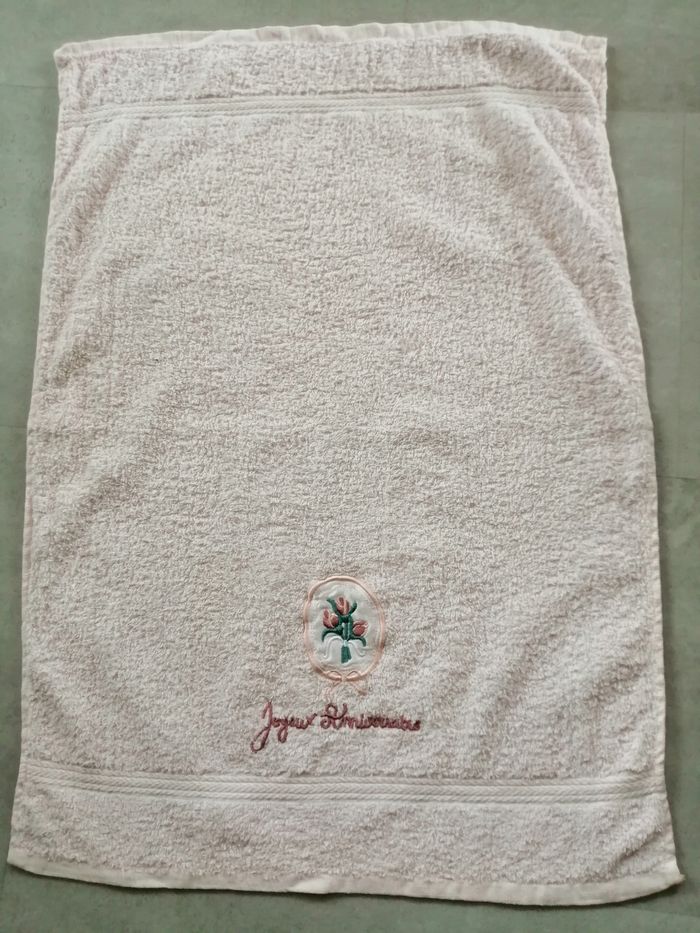 serviette rose pale Joyeux anniversaire 70 x 50