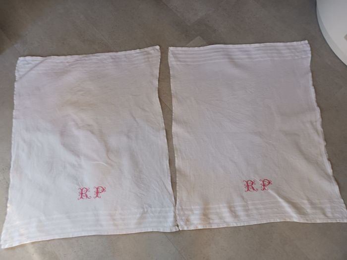 lot de 2 torchons nid d'abeille brodé RP vintage