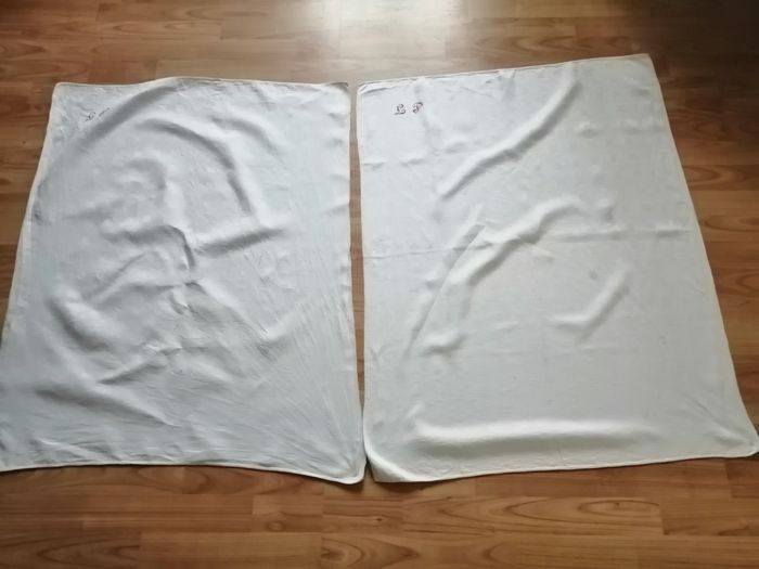torchon blanc brodé LP en rouge