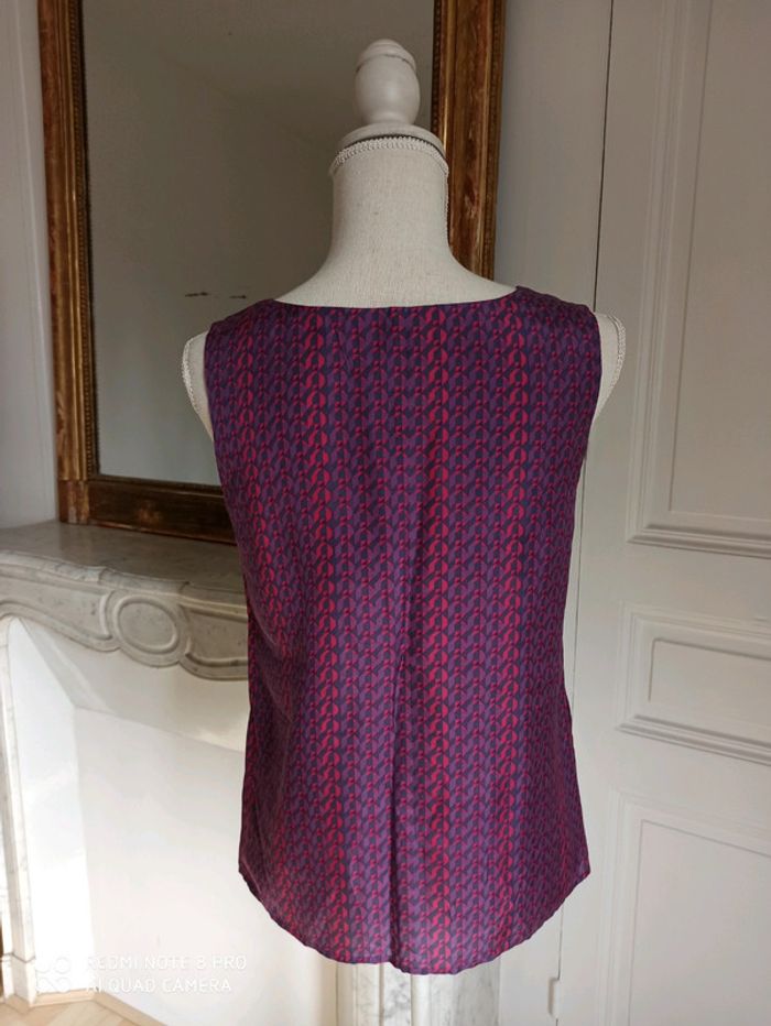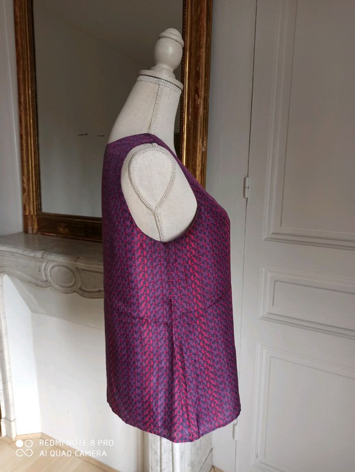 Débardeur SUD EXPRESS. Taille M. Neuf, jamais porté. Prédominance de tons violets et roses. 100% soie, très agréable au toucher. Élégant et léger !