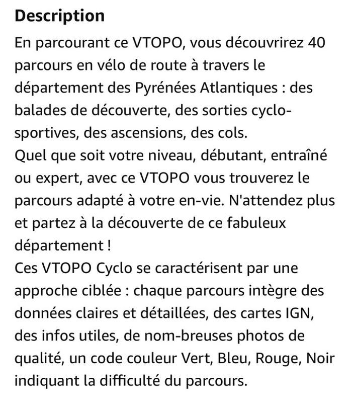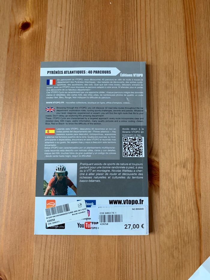 40 idées de parcours dans les Pyrénées Atlantiques Acheté le 27/07 à Décathlon Erreur d’achat mais ils ne reprennent pas l’article Valeur neuf: 27€