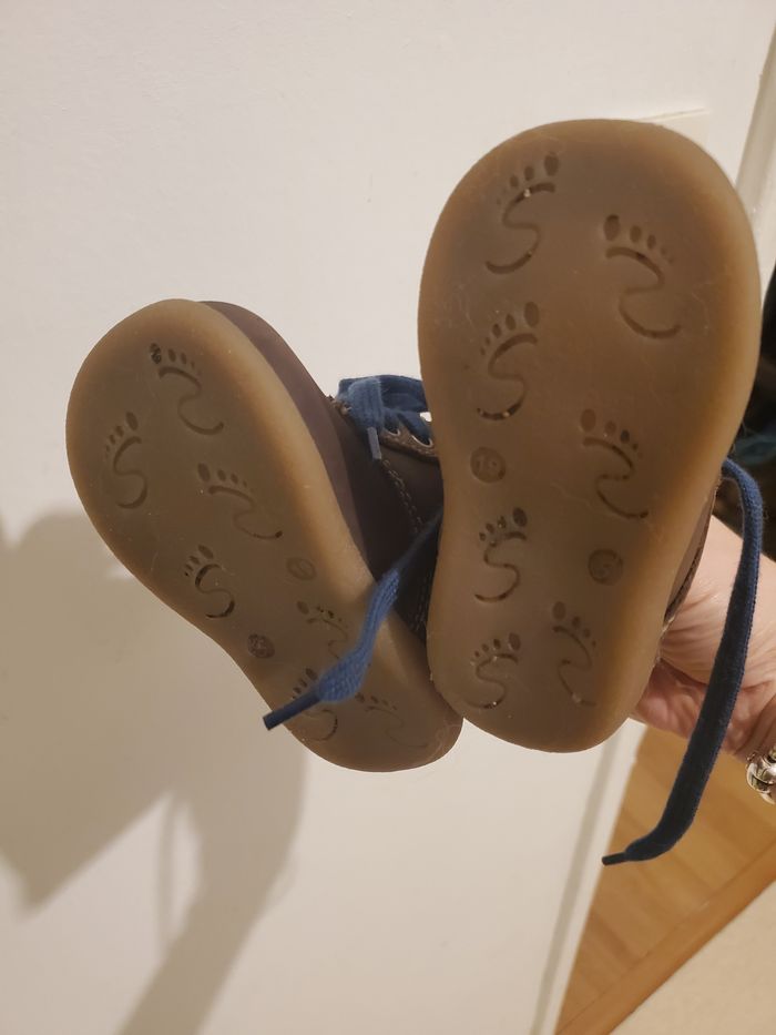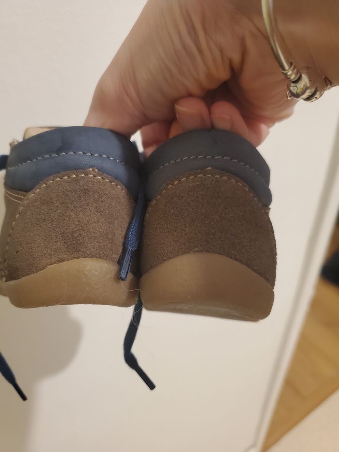 Vend chaussures bébé 1er pas de chez Gémo, couleur taupe et bleu en cuir suédé. Taille 19 , mais taille petit à mon avis. En très bonne état, acheté il y a 2 mois et portés quelques fois, nettoyer après chaque sortie !