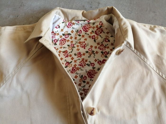 Très belle popeline beige. Très belle qualité.100 % coton. Hauteur 140 cm. Largeur poitrine 71 cm. Boutons cachés sous pate.