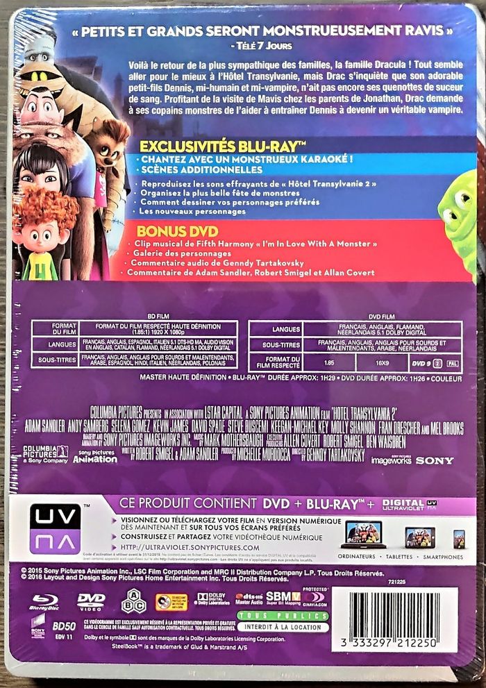 Coffret Blu-ray + DVD Hôtel Transylvanie 2 Durée : 1h26 Sous blister